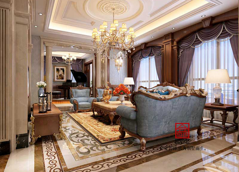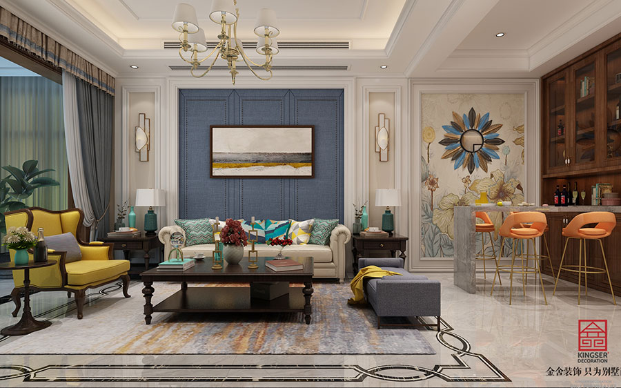 榮盛華府178平米美式輕奢風格裝修效果圖