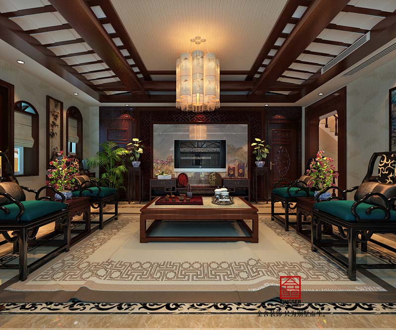榮盛御府186平中式簡(jiǎn)約裝修效果圖