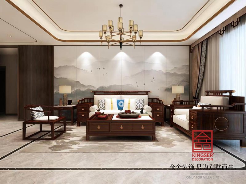 國賓壹號新中式風格裝修效果圖-餐廳 國賓壹號新中式風格裝修效果圖-客廳 國賓壹號新中式風格裝修效果圖-玄關