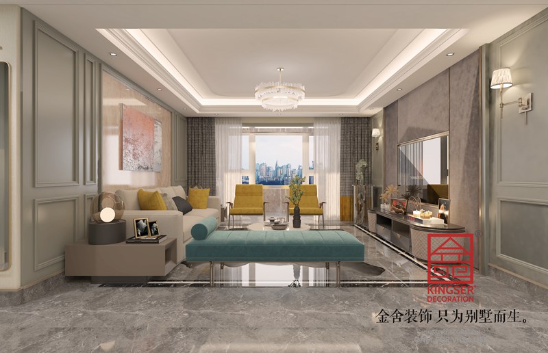 融科瀚棠聯(lián)排別墅裝修客廳效果圖