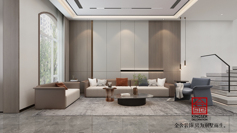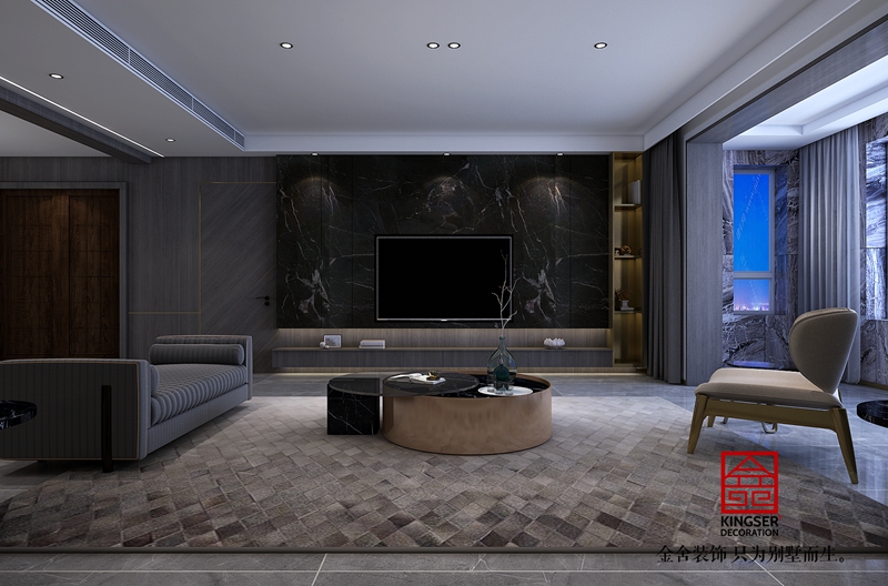 金碧天下現代輕奢風格別墅裝修客廳效果圖