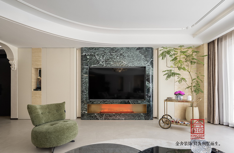 以輕盈法式為基調(diào),在450㎡的開闊空間里,平衡優(yōu)雅與實用。一層作為家庭核心活動區(qū),既保留法式的浪漫肌理,又融入現(xiàn)代生活的松弛感。