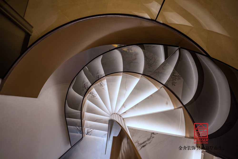 負一層作為收納和家政的主要場域,弱化傳統(tǒng)法式的繁復裝飾,轉(zhuǎn)而用現(xiàn)代設(shè)計語言傳遞輕松氛圍,洋溢著不拘束的雅致感。
