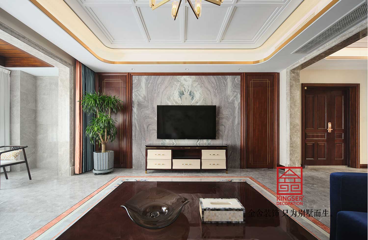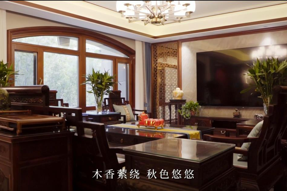 國賓壹號158㎡中式風格實景 木香縈繞 秋色悠悠 明月墨松間 半邊構描 半面浮生 古松蒼山遠 斜陽一縷 茗香暮色 墨韻點青山 金舍裝飾只為別墅而生