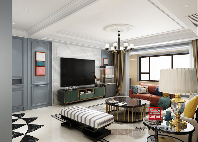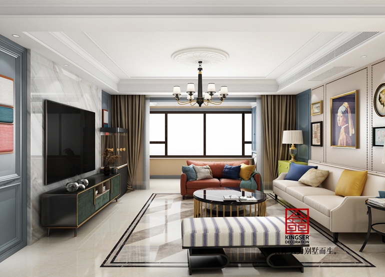 榮盛華府-美式裝修-客廳