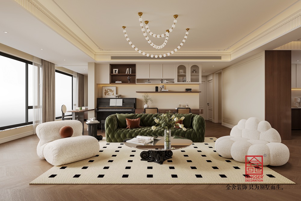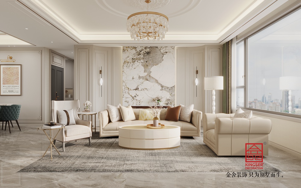 金域和府180平米美式輕奢風格裝修-客廳