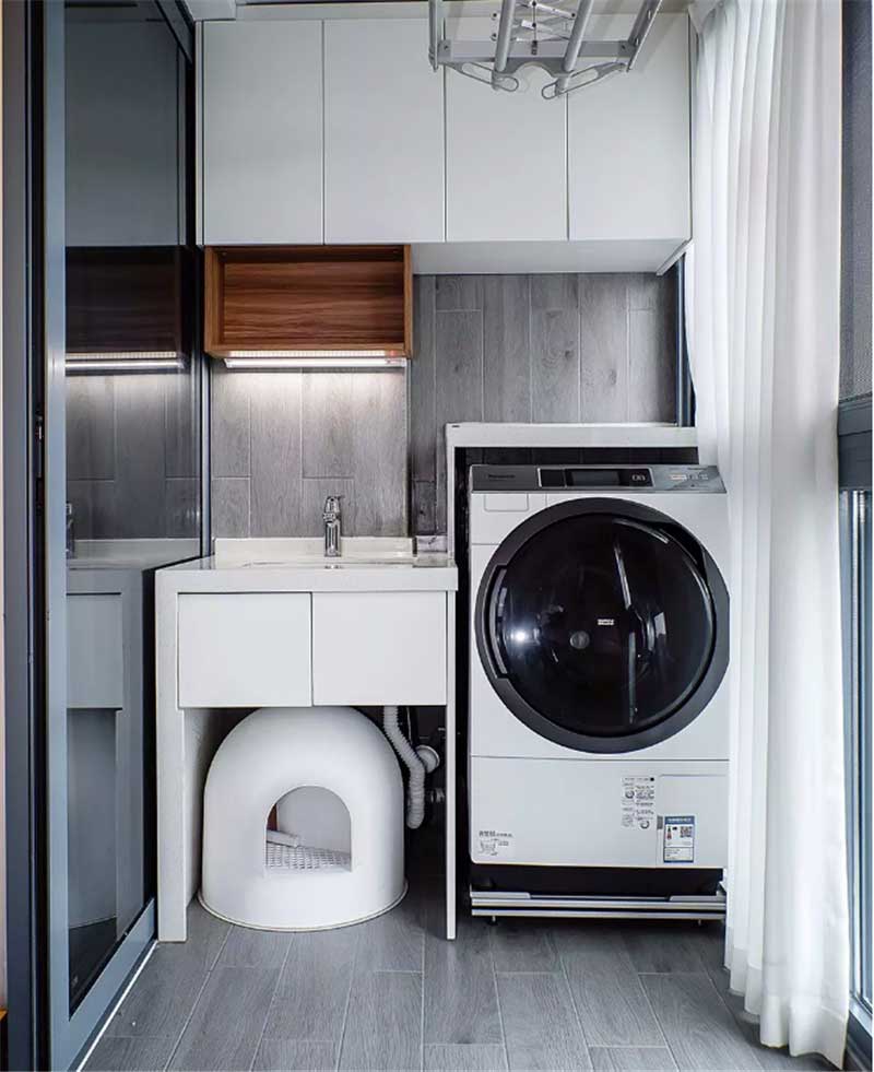 洗衣柜的設計很多都自帶洗手池,在客廳或者陽臺吃完東西,直接就能在陽臺洗手,更加方便。不過不要忘記配備專門的毛巾和洗漱用品,以后早上也不用擔心衛(wèi)生間使用上的沖突。