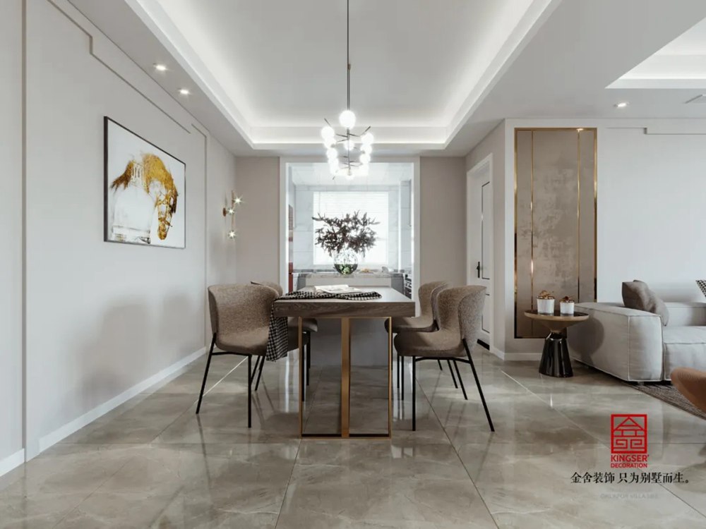 此案例為石家莊金舍裝飾-融創(chuàng)中心137平米輕奢風(fēng)格裝修案例賞析。生活原本就該屬于寧?kù)o,當(dāng)我們置身于繁華都市太久,自然會(huì)想要抽身剝離,去追尋內(nèi)心的閑適與平和。一個(gè)優(yōu)雅舒適的家,除了擁有優(yōu)質(zhì)的地理位置與人性化的社區(qū)管理以外,還需要精致的軟裝設(shè)計(jì)來裝點(diǎn)生活。輕奢是一種高格調(diào)的生活態(tài)度,正是年輕人所需要的生活品質(zhì),輕奢生活,精致到老,對(duì)于現(xiàn)代人,尤其是當(dāng)下的年輕人們而言,切實(shí)給了人們心靈的觸動(dòng)。