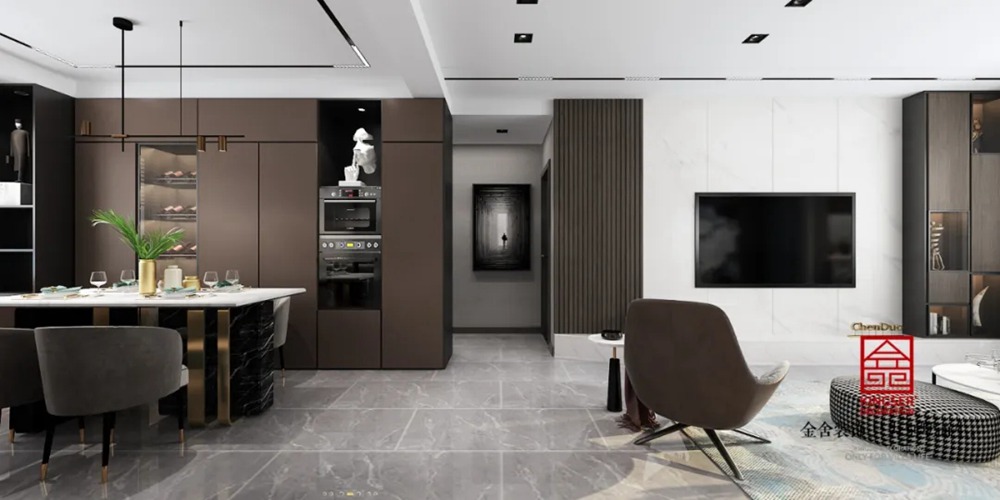 深咖的顏色,讓這個空間充滿了不少的神秘感。強烈的顏色對比,烘托出設計師對于顏色的把控,讓設計回歸生活的本質,營造舒適、自然的空間氛圍!
