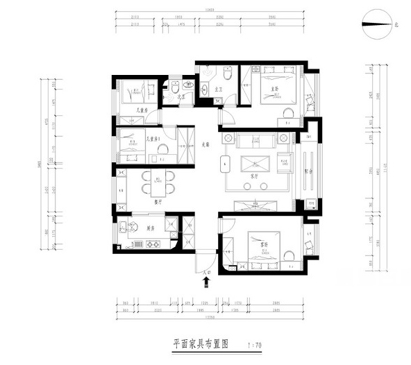 此戶型采光比較好,但是各個空間功能區域分布不明確,空間利用不充分。主臥的衣帽間空間狹窄
