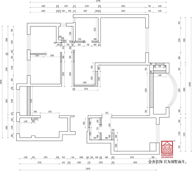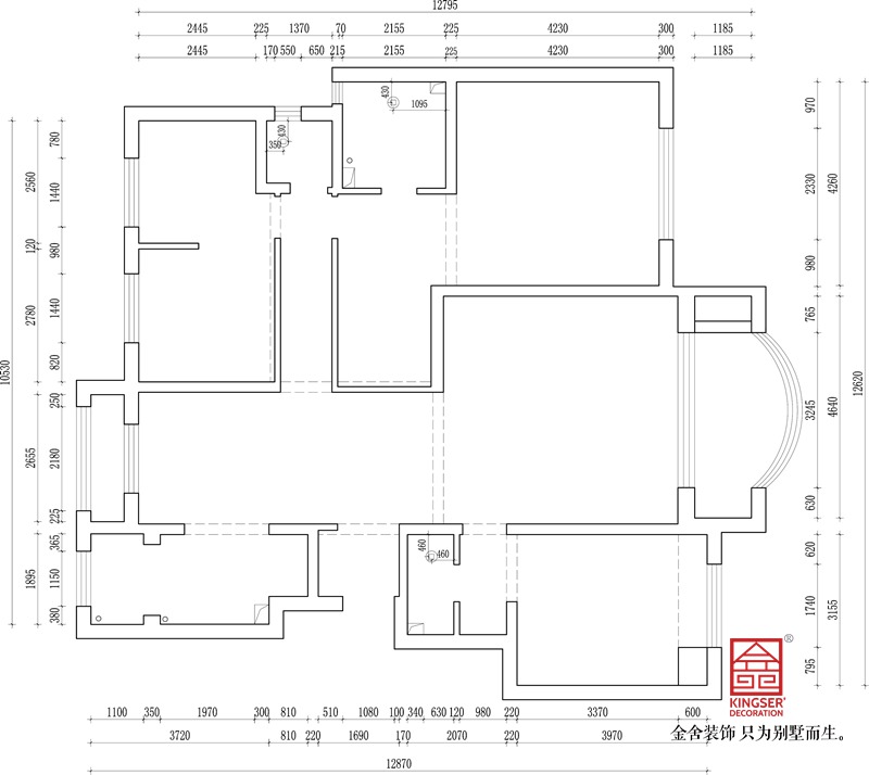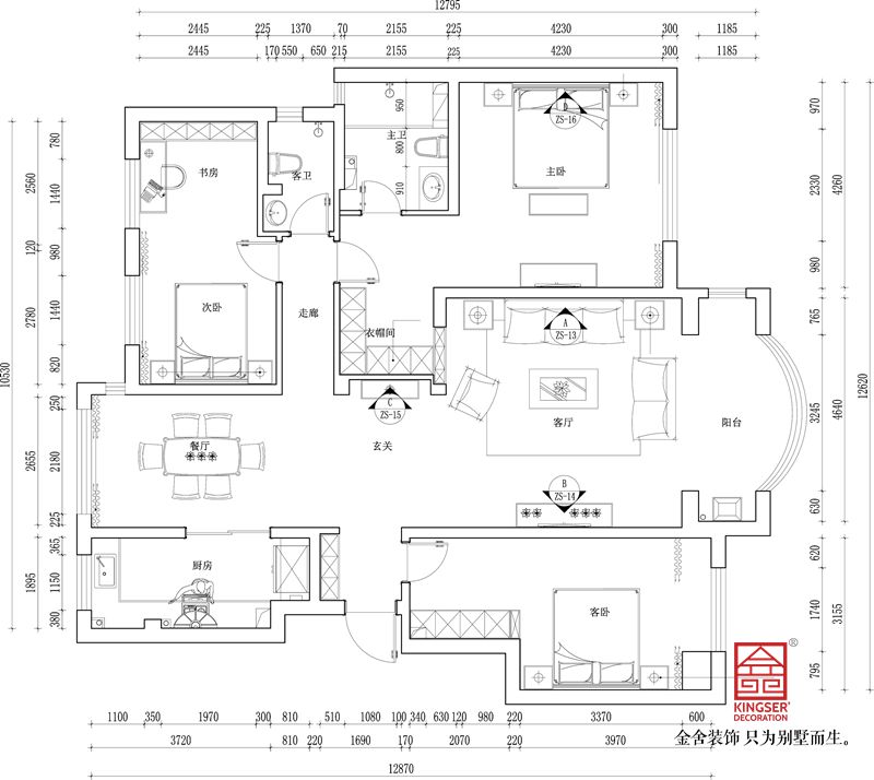4、拆除一部分走廊墻體,使走廊變得不再狹長(zhǎng),客衛(wèi)墻體外擴(kuò)增加了衛(wèi)生間的面積,同時(shí)主衛(wèi)也擴(kuò)大了面積,北臥室的墻拆除變成開敞書房加臥室。