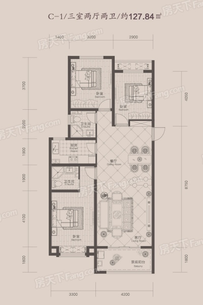 風格:現代簡約風格 戶型:三居 面積:127㎡