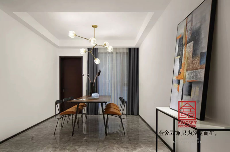 石家莊金舍裝飾-天山九峯175平米極簡風格裝修實景圖。極簡風格的美麗不光是一種快節奏生活中的剪影,也是一種特立獨行的生活方式,對于極簡人來說優雅也是一種生活態度。同樣對于推崇極簡風,推崇工業風的人來說,極簡風格就是一個極致的風向標。