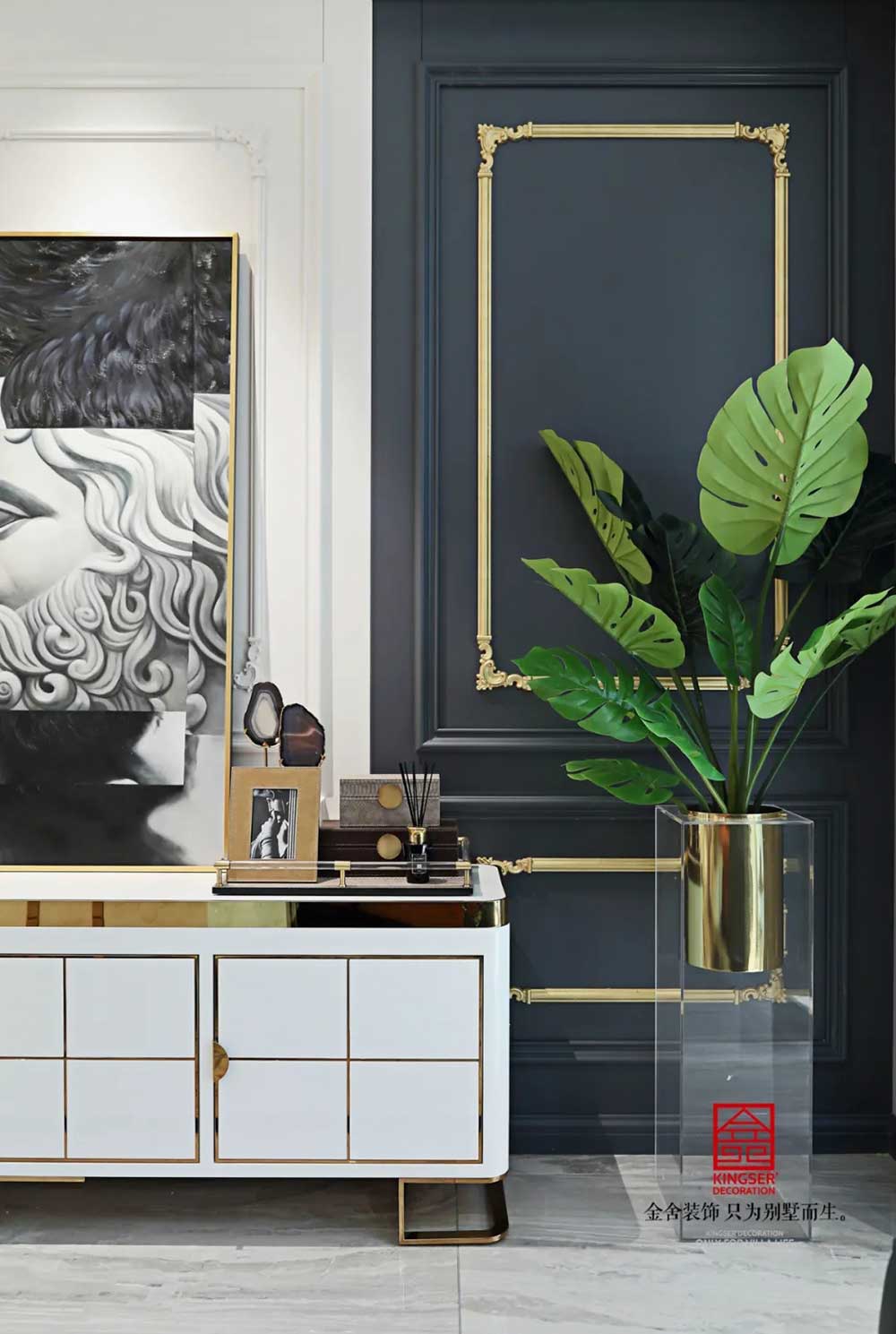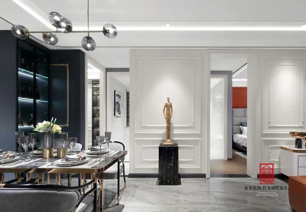 石家莊金舍裝飾-亨倫觀唐名邸118平米新古典風格裝修實景。打破了傳統(tǒng)的新古典風格,將元素簡化到極致,讓風格隨著居住者而變化,生活的味道自然會隨著設(shè)計的發(fā)展而不斷變化。新古典中“古典”這個詞是家居的核心,新古典風格化繁為簡,從整體到局部,無論是精雕細琢,還是鑲花刻金都給人一絲不茍的印象。