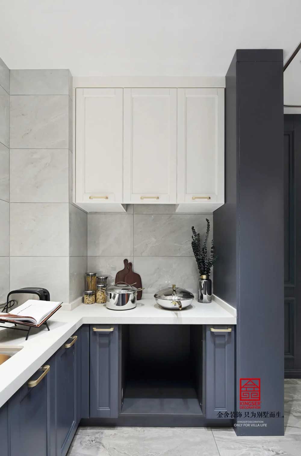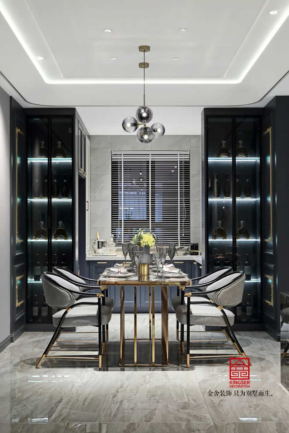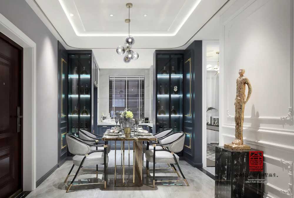 深藍、古銅和灰色調(diào)勾勒出紳士的高雅格調(diào)和品味。從空間利用到配色處理,匠心獨具,每一個空間都濃縮著設(shè)計師對新古典的獨特理解。