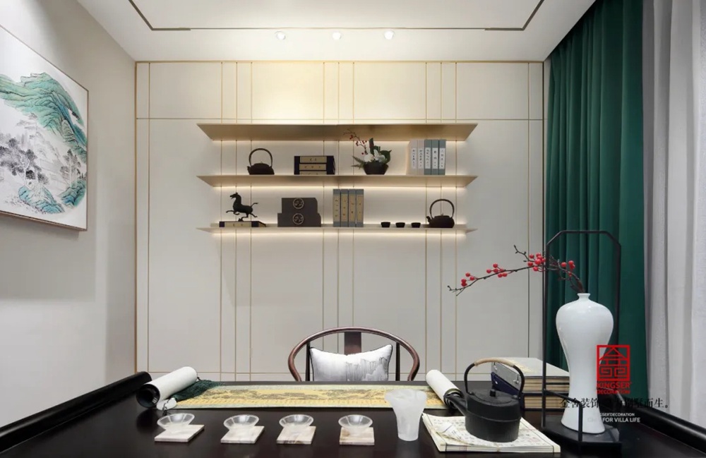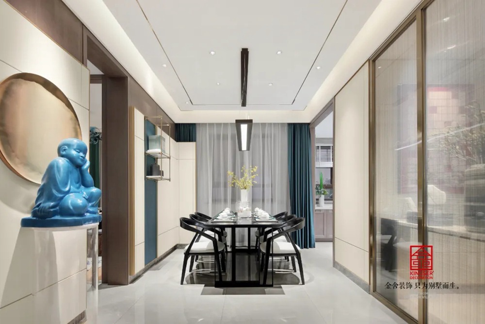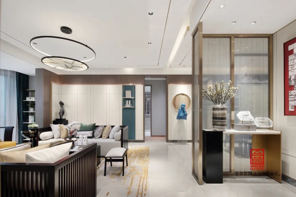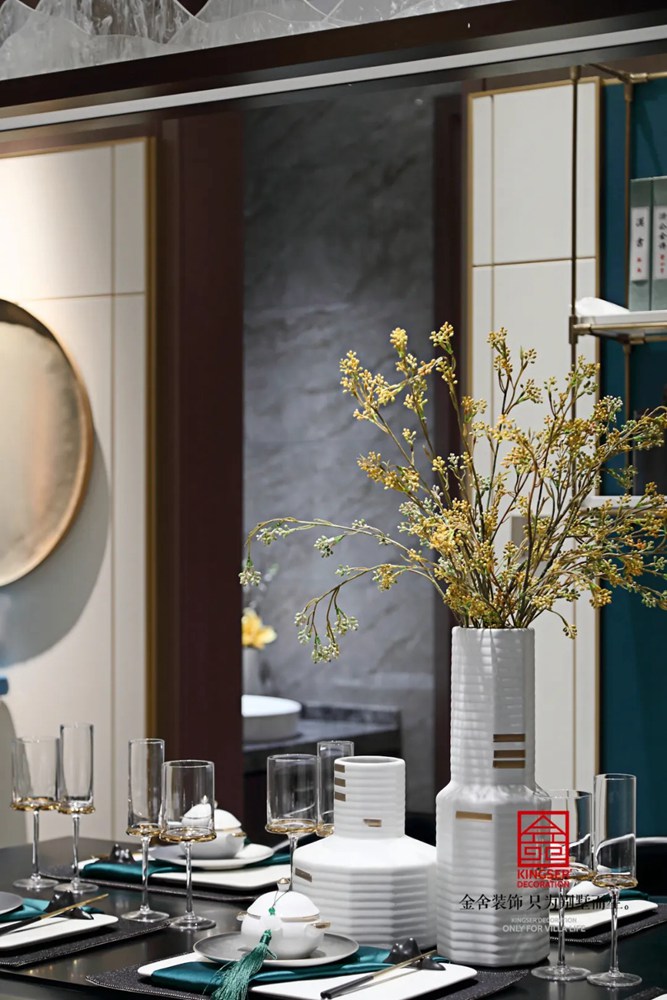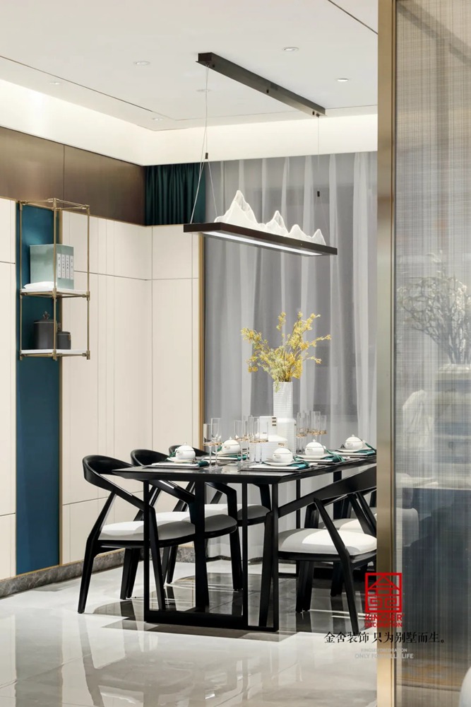 此案例為石家莊金舍裝飾-亨倫觀唐名邸139平新中式風格裝修實景。中式風格的印象一直都是人們心中不同的理解,不同的朝代不同的文化,不同的境界不同的水準,入華則為華,千百年來中國的文化就一直在進行一個兼容并包的狀態(tài)之中,不斷有新的元素新的理念加入到其中,讓中式風格不在拘泥于形式,融匯出了一個屬于我們民族特有的文化意境符號。