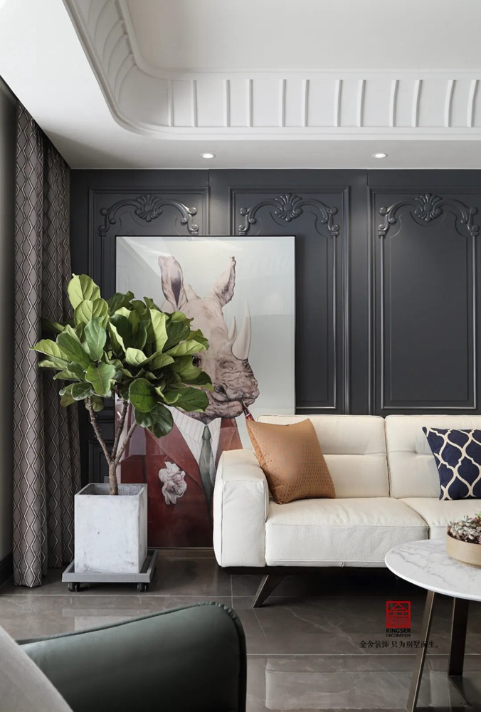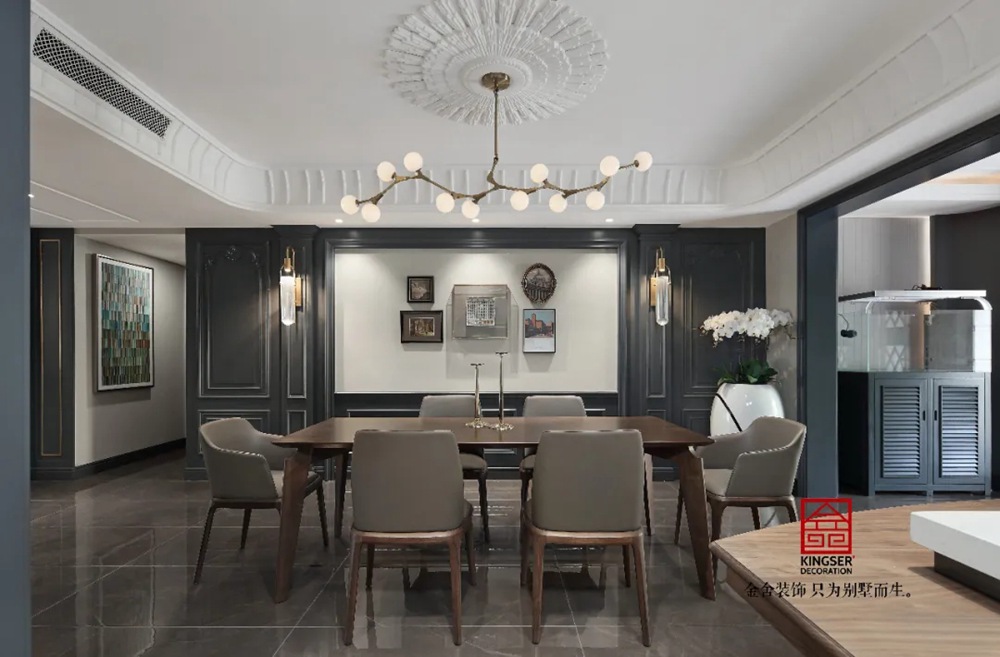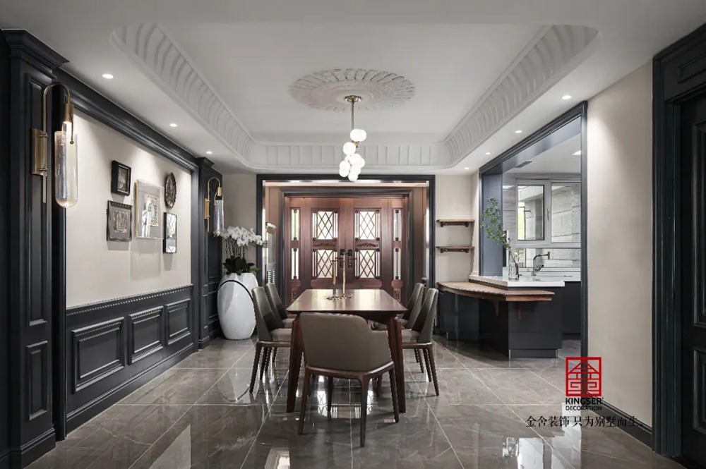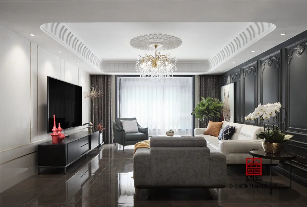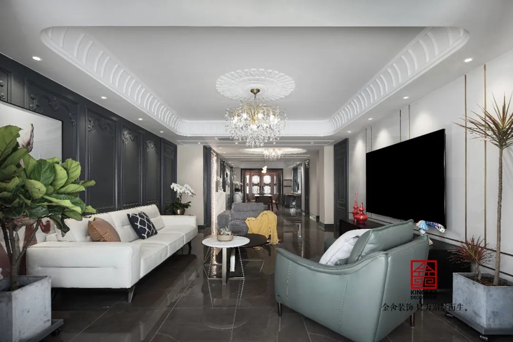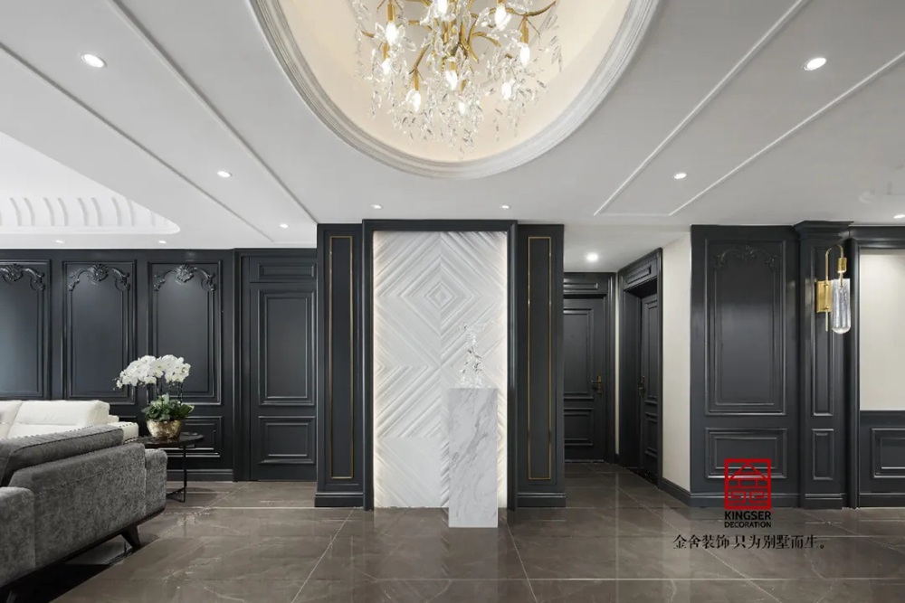 此案例為石家莊金舍裝飾-御河上院220平米新古典風(fēng)格裝修實(shí)景。 新古典風(fēng)格從簡單到繁雜、從整體到局部,精雕細(xì)琢、鑲花刻金都給人們留下一絲不茍的印象。它一方面保留了材質(zhì)、色彩的精致風(fēng)格,可以很強(qiáng)烈地感受到悠久的歷史痕跡與渾厚的文化底蘊(yùn),同時(shí)又摒棄了過于復(fù)雜的肌理和裝飾,簡化了線條。