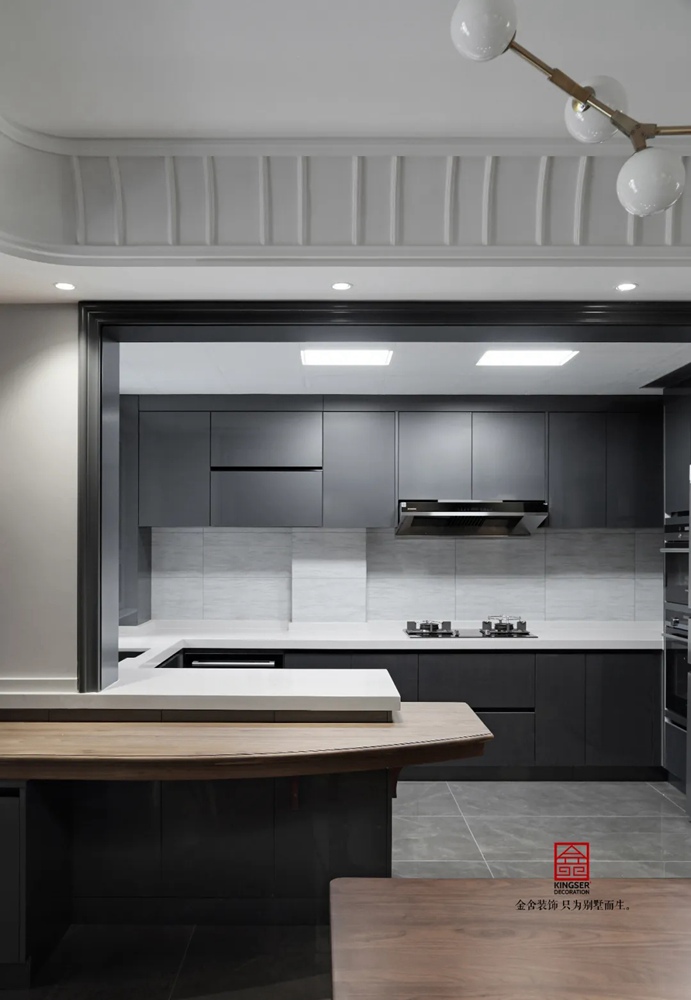 半開放式廚房兼顧優(yōu)雅與舒適,既注重起居品質(zhì),又不喜歡過分的張揚(yáng),這是一種生活感悟,更是一種對奢享的崇尚。