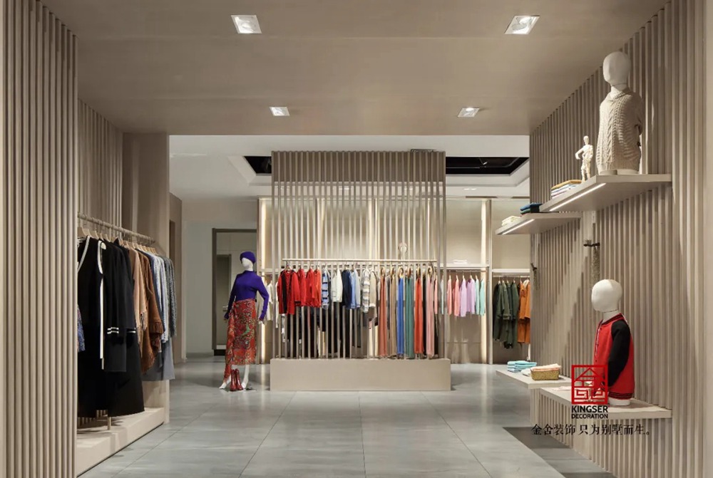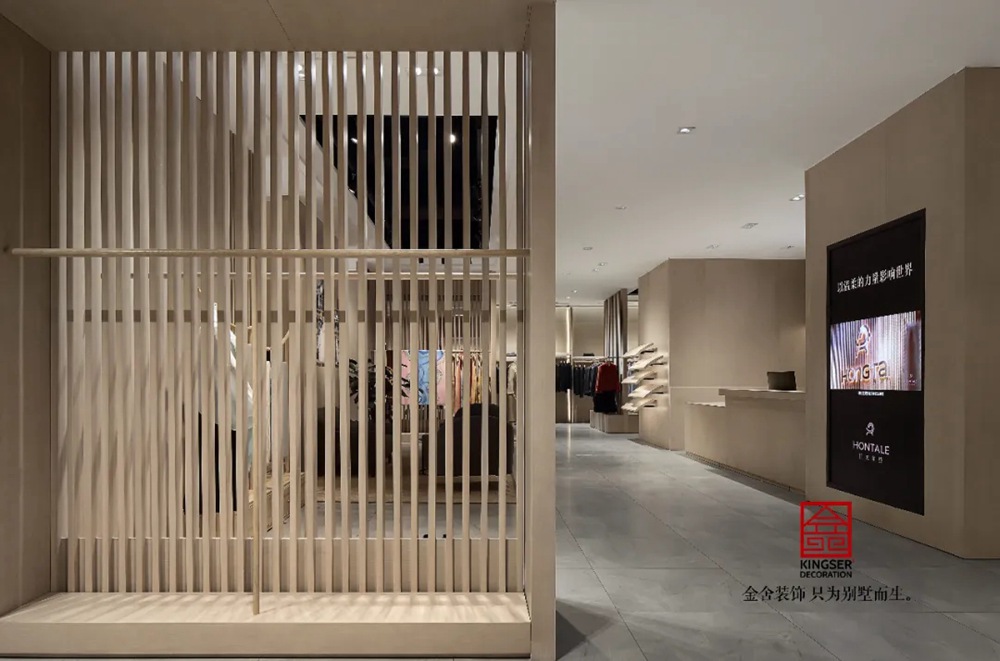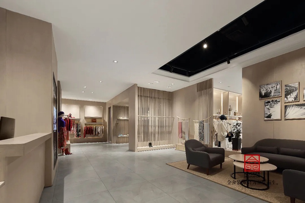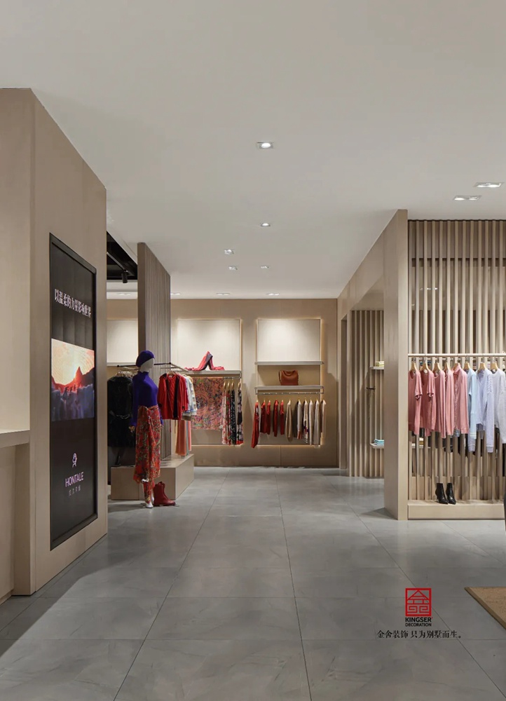 在該案的設計上設計師深諳整體與局部,線條與燈光,色彩與配飾之間的關系,把握整體而不忽視局部,突出線條而不削弱燈光,彰顯原木色彩而不漏掉配飾,匠心獨運打造出一個讓人心馳神往的購物天堂