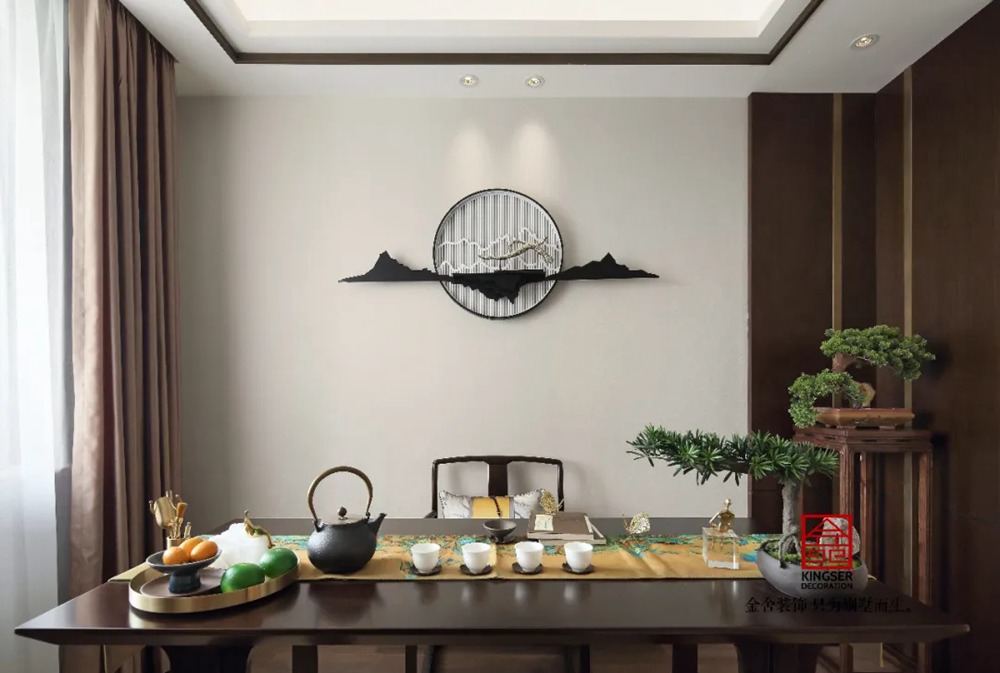 古色古香的餐廳配以單筆勾勒的墨寶,宛若徐徐展開的水墨畫卷,清雅寫意,自由而欣慰。