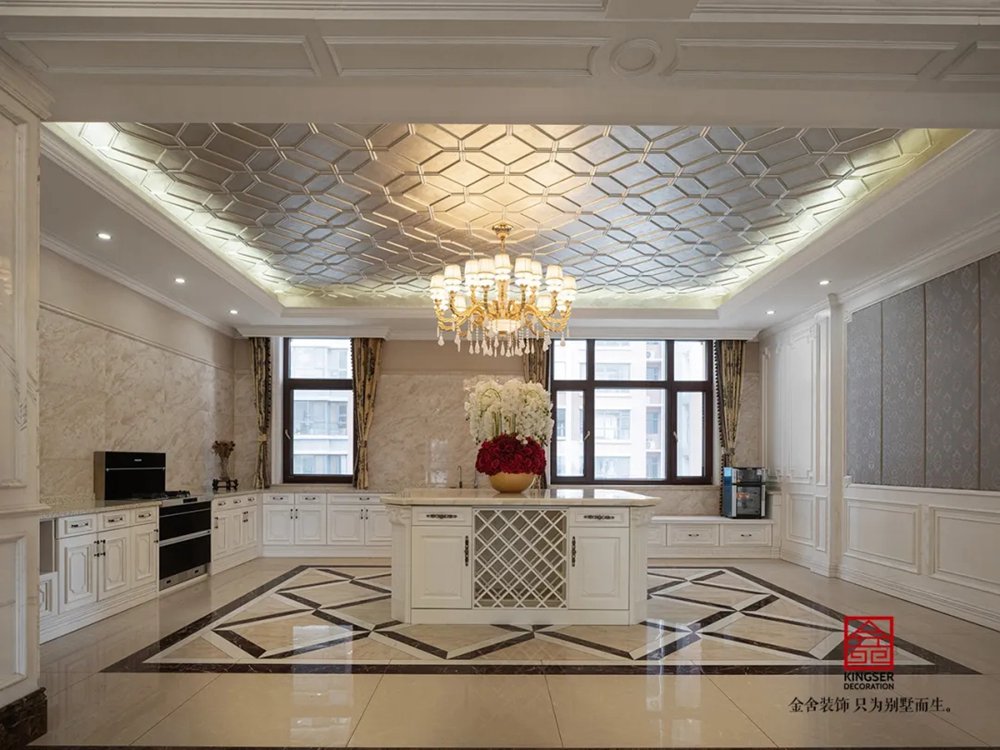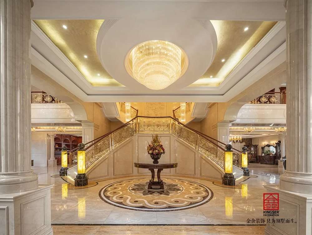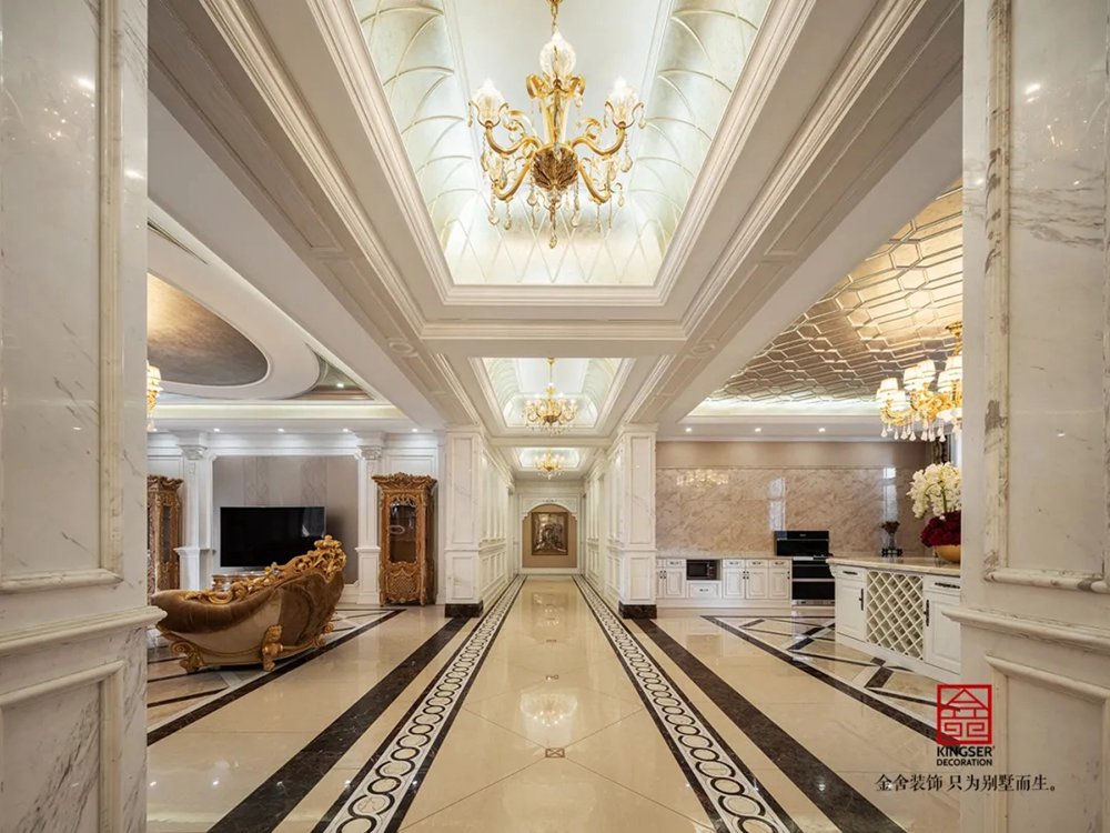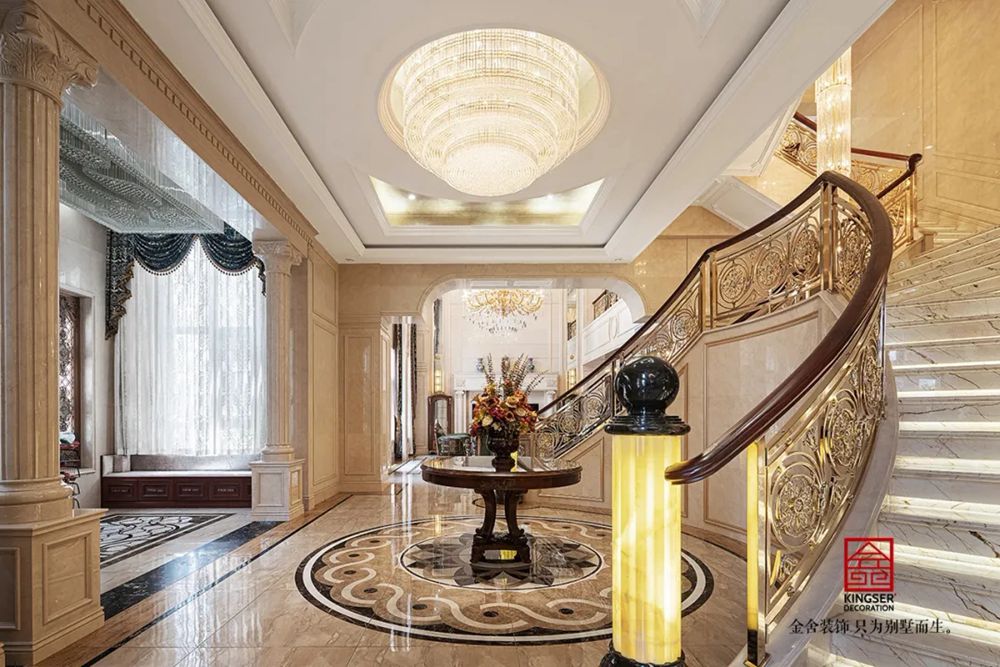此案例為石家莊金舍裝飾-無極御瓏華府2400平米別墅歐式風格裝修實景。御瓏華府“中西合璧”這是一套集“土建+硬裝+軟裝+庭院”一體的全案設計,占地東西70米,南北50米,整個結構坐落于小區的核心位置,打開家門,先是私有的庭院生活,再而迎面就是小區的綠化水系,視野開闊,一覽全景。方案設計為“中西合璧”風。浪漫的歐式古典風融入東方設計元素,嶄新的文化底蘊得以傳承,既有歐式的富貴典雅又有中式的文化底蘊,二者巧妙應用,提升整個空間氣質。