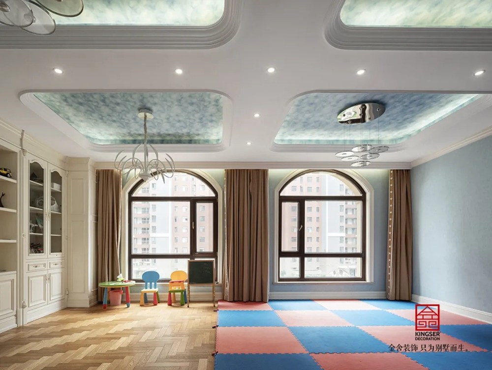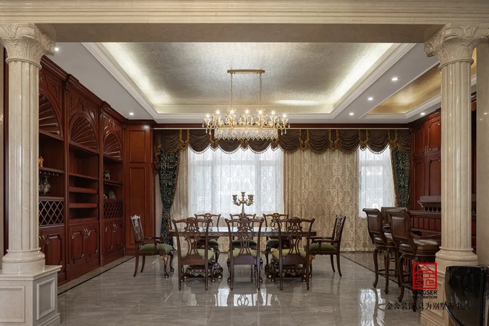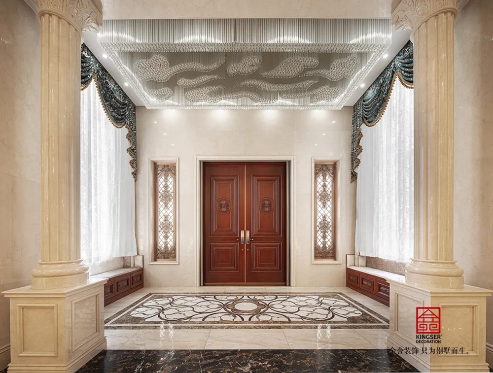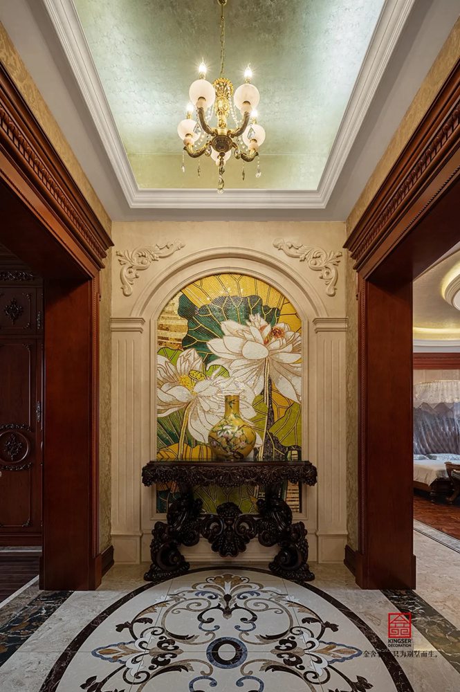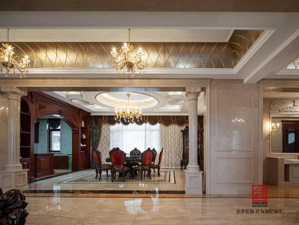 此案例為石家莊金舍裝飾-無極御瓏華府2400平米別墅歐式風格裝修實景。御瓏華府“中西合璧”這是一套集“土建+硬裝+軟裝+庭院”一體的全案設計,占地東西70米,南北50米,整個結構坐落于小區的核心位置,打開家門,先是私有的庭院生活,再而迎面就是小區的綠化水系,視野開闊,一覽全景。方案設計為“中西合璧”風。浪漫的歐式古典風融入東方設計元素,嶄新的文化底蘊得以傳承,既有歐式的富貴典雅又有中式的文化底蘊,二者巧妙應用,提升整個空間氣質。