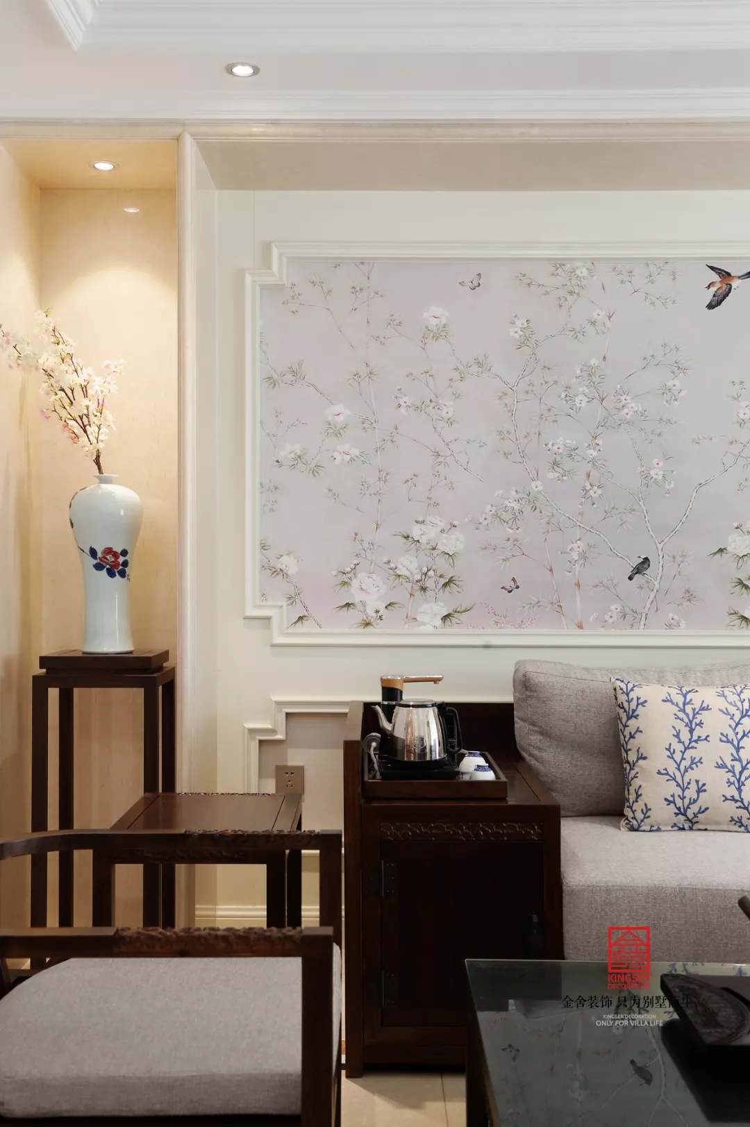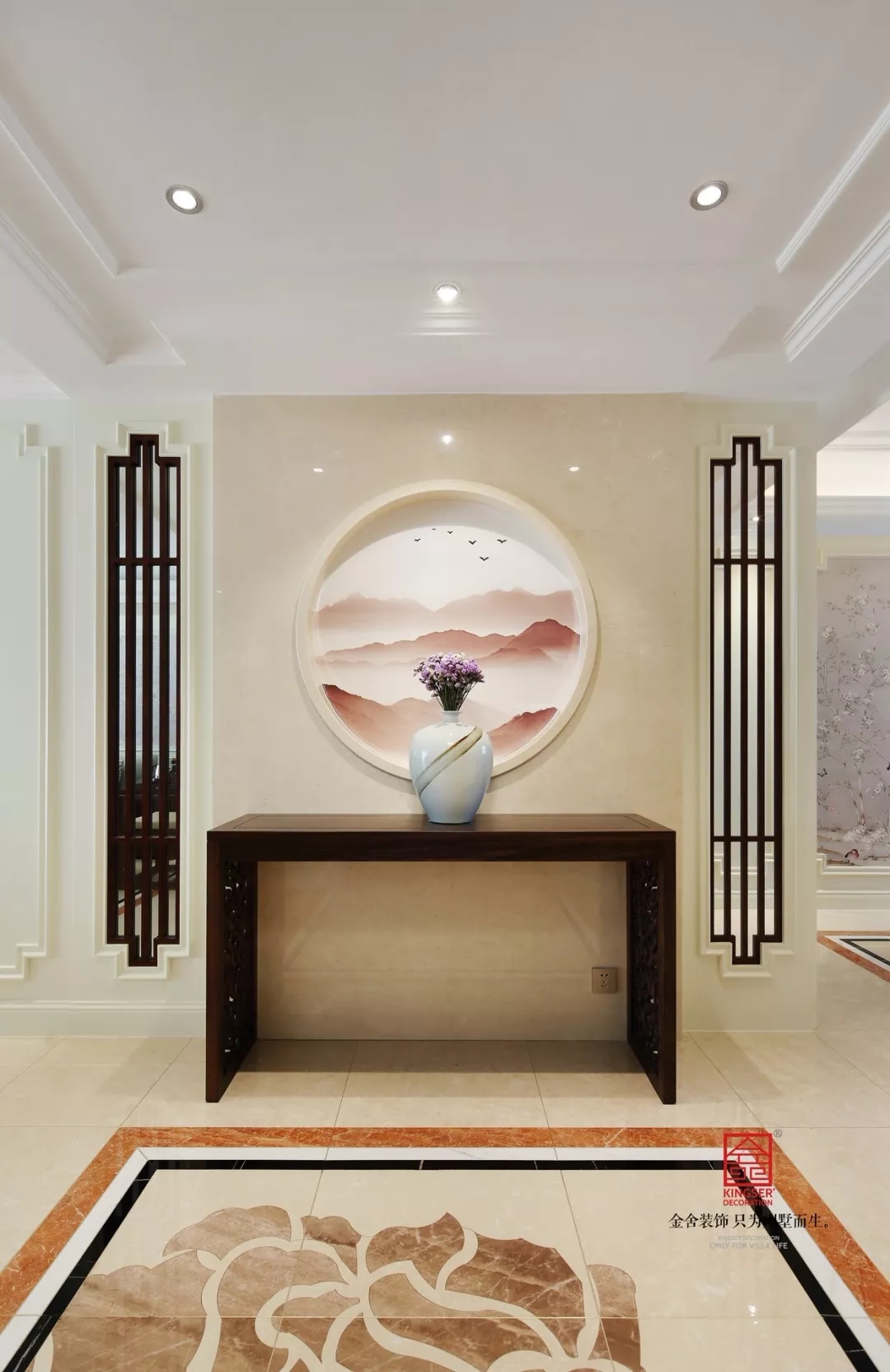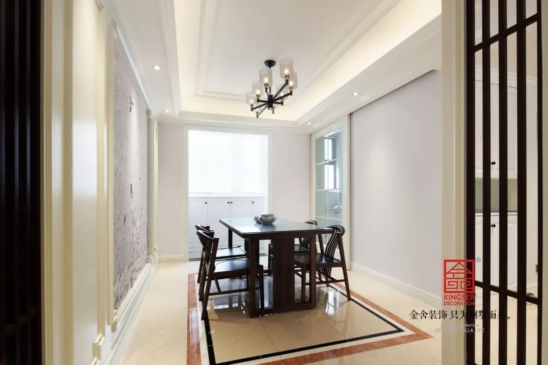此案例為石家莊金舍裝飾-冀興尊園150平米新中式裝修效果圖。傳統的中式風格裝修設計古雅、情節濃厚,而新中式的設計是將中式經典中融入更多新的元素,巧妙的結合而成整個居室的裝修效果,讓空間內彰顯典雅韻味而又不失時尚氣息。多種元素的共存,多種風格的兼容,在風格選擇上不拘一格,選取不同觸覺、視覺交織融合,存其風骨,取其神韻,典雅而又不乏時代的積淀。