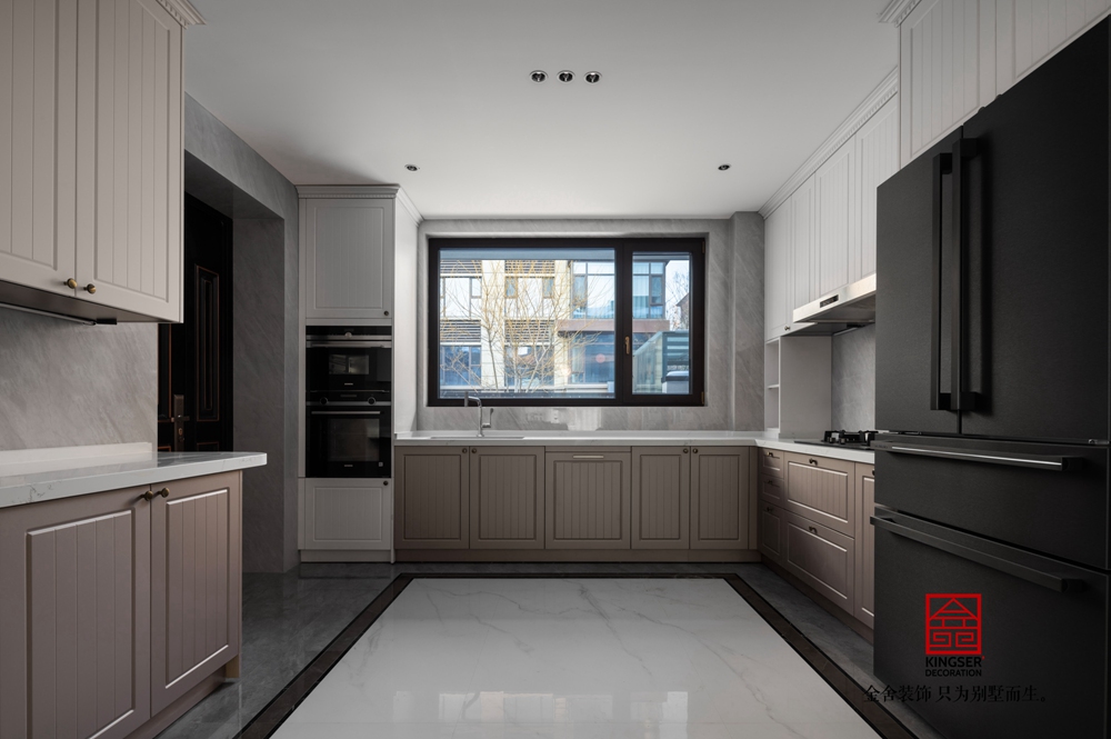 巧妙地融合了餐廳與廚房的空間,創(chuàng)造了一個(gè)開放而又不失獨(dú)立性的餐廚一體化區(qū)域。這一設(shè)計(jì)理念旨在讓烹飪與用餐的體驗(yàn)更加流暢,同時(shí)也增強(qiáng)了家人與朋友之間的互動(dòng)。餐廚空間的中心位置,我們精心打造了一個(gè)巖板中島臺(tái)。中島臺(tái)不僅作為廚房的操作臺(tái),還充當(dāng)了餐廳與廚房之間的自然分隔,既保證了兩個(gè)空間的獨(dú)立性,又確保了視線的通透與流動(dòng)。