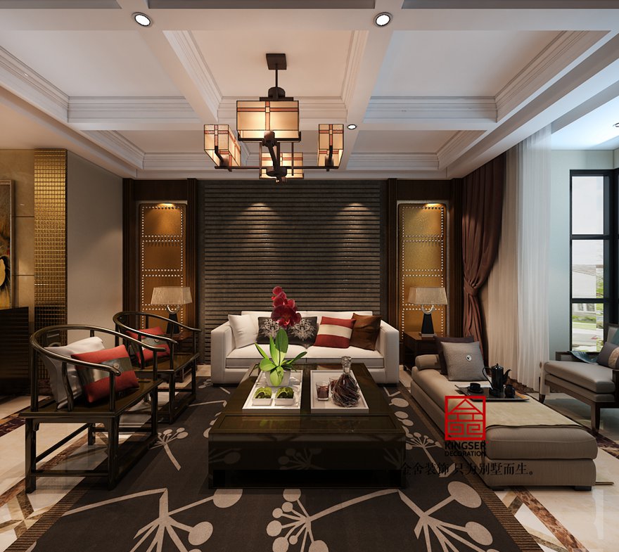 設計說明:此案例為石家莊金舍裝飾-新源燕府186平米新中式風格裝修案例。新中式風格誕生于中國傳統文化復興的新時期,是富有東方特色的新的風格。是現代人將現在流行元素與傳統文化的結合,它們的完美融合是現在美學上的一個新的亮點。整個空間中,中式古韻與現代時尚相搭配,使人不覺運用現代思維來細細玩味那番閑情逸致來。