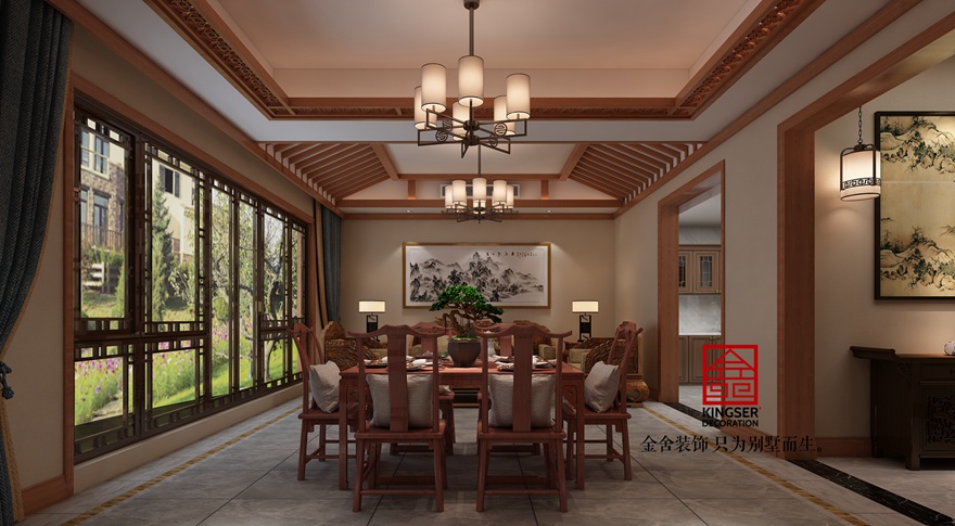 設計說明:此案例為石家莊金舍裝飾-大者國山雅院194平米中式風格裝修案例。本案最初的設計要求是中式風格,但設計師經過與客戶的多次溝通后,達成共識:要求保持中式風格的雍容華貴的氣度,但是要避免中式風格帶來的沉悶。所以一直認為要做的風格是:現代環境中具有中式元素的現代中式風格。