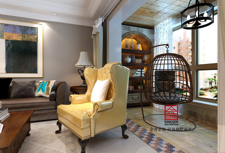 作為家居的休閑陽臺,是家里一個點(diǎn)睛之作,神來之筆的五彩小磚的應(yīng)用,配以淺咖色系薄沙,舒適的躺椅,一杯濃濃的下午茶,會讓人忘卻一切煩惱,一切瑣碎,享受不盡的愜意與舒適。也極大的與客廳大面的高冷形成鮮明的反差,對比之下更有意味,更值得回味。軟裝配飾是裝飾家居的很重要的元素,不規(guī)則沙發(fā)位的擺放,加上精心布置的一把明黃椅,讓人在冷靜的空間里眼前一亮,一抹跳色給人帶來意想不到的驚喜。奶油黃色的家具和門,使得空間更加的溫暖,顯得更加的別致有寓意。也彰顯這件客戶對細(xì)節(jié),對生活的一種要求和品質(zhì)。.