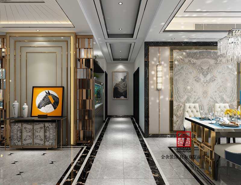 此案例為石家莊金舍裝飾-榮盛華府185平米港式風(fēng)格裝修效果圖。港式風(fēng)格家居也有其自身特點(diǎn),多以金屬色和線條感營(yíng)造金碧輝煌的豪華感,簡(jiǎn)潔而不失時(shí)尚。