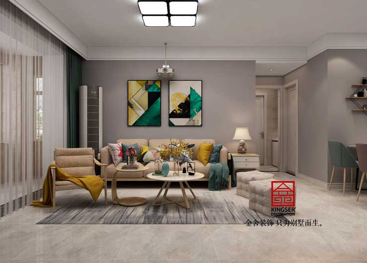 此案例為石家莊金舍裝飾-天山國賓壹號88平米現代簡約風格裝修效果圖。簡約主義源于20世紀初期的西方現代主義。簡約風格的特色是將設計的元素、色彩、照明、原材料簡化到最少的程度,但對色彩、材料的質感要求很高。因此,簡約的空間設計通常非常含蓄,往往能達到以少勝多、以簡勝繁的效果。