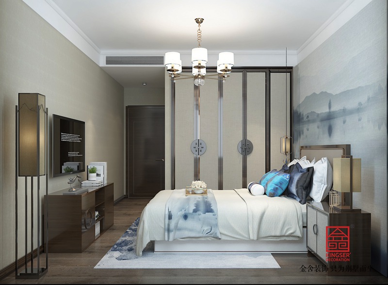 本案為石家莊金舍裝飾-維多利亞三期135平米中式風格裝修效果圖。定義為新中式風格,客廳以木布結合的家居為主,房間的整體感覺明快透亮,在整體空間中和諧基調上彰顯出“韻”的氣質,軟裝與硬裝上的中式元素的運用,成就了本案的精髓和靈魂,設計中不拘泥于單一的設計風格,力圖在優雅中呈現出中式的文化氣息,追求深沉里顯露尊貴,典雅中浸透底蘊的設計表現。通過對傳統文化的認識,將現代元素和傳統元素結合在一起,以現代人的審美需求來打造富有傳統韻味的事物