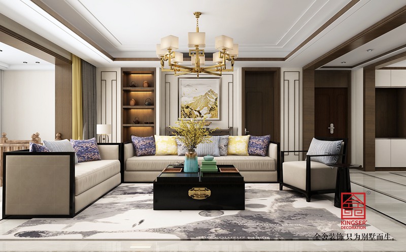 典雅的色調,精致的細節,充滿中式底蘊的文化表現,是錦粹,錦上添花的美感。在軟裝上采用了棉麻,絲光,金屬,木材等高品質貼切生活的材質訴說著新中式、新藝術的生活態度,