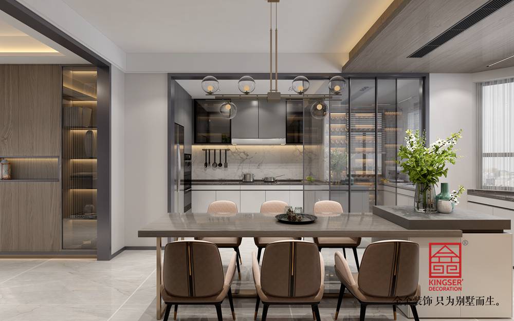 在空間上,盡量放空、開放式廚房、陽臺、琴房,讓公共部分動線流暢、寬敞 、舒適。