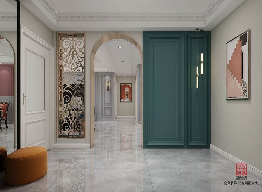 設計說明:此案例為石家莊裝修公司-悅傾城140平米美式風格裝修效果圖。美式輕奢風格自然、樸實的特點能讓人感覺舒適、放松.別致的衣柜門板飾面紋理搭配纖細的金屬線條的造型,將生活質感表現得淋漓盡致,真正的輕奢主義,是一種不會因為周遭環境差而將就生活,也不會被繁華干擾而迷失自我的生活態度。。即使在生活重壓下喘不過氣,也要想方設法從細微處滿足內心精神需求。