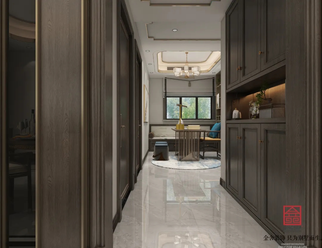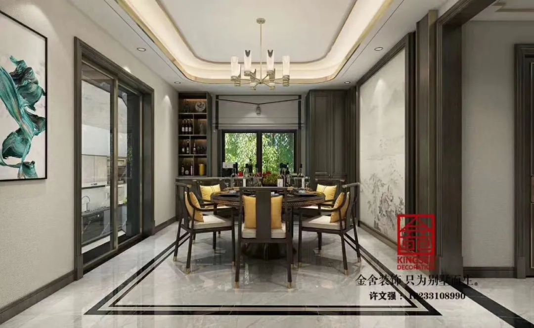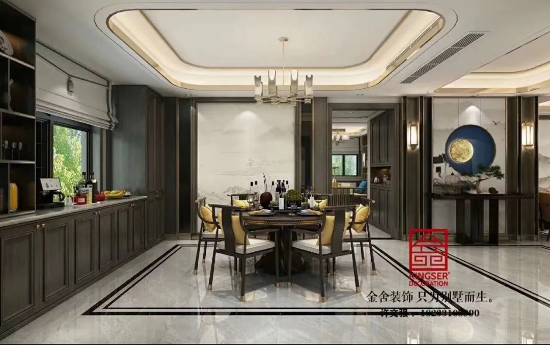 此案例為石家莊金舍裝飾-榮盛華府215平米新中式風(fēng)格裝修案例。新中式風(fēng)格傳承了傳統(tǒng)中式風(fēng)格的文化底蘊(yùn),又將現(xiàn)代審美融入其中,將含蓄內(nèi)斂的美學(xué)韻味徐徐呈現(xiàn)在了眾人面前,令人沉醉、留戀。似有靜謐、似含古韻,思想不禁浮想聯(lián)翩,無法掩飾一個(gè)人的精神世界,是心靈和性情的外化之地。中式元素與現(xiàn)代材質(zhì)搭配,既有文化的傳承又不會(huì)全盤固守傳統(tǒng),是現(xiàn)代的思想與千年來的文化彼此融合與碰撞。