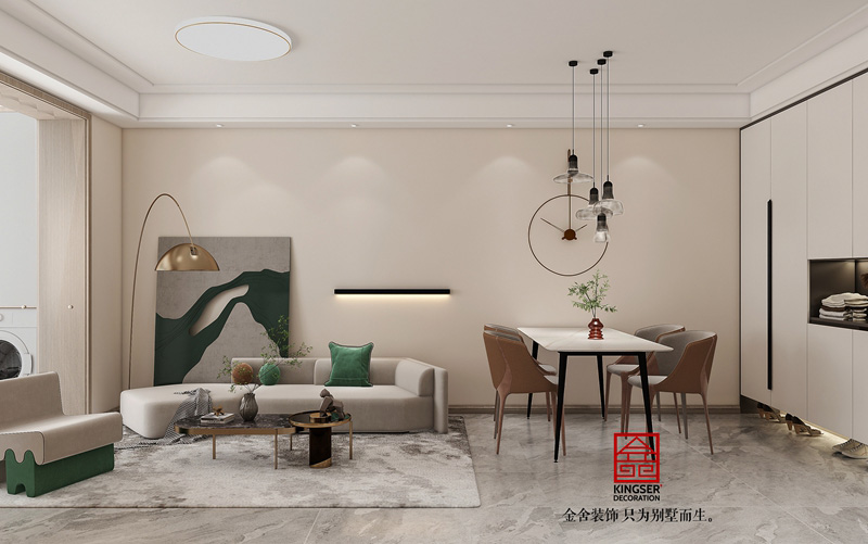 金舍裝飾-天山熙湖二期91平米現代極簡風格效果圖。現代風格外形簡潔、功能強,強調室內空間形態和物件的單一性、抽象性。現代簡約風格,顧名思義,就是讓所有的細節看上去都是非常簡潔的。裝修中極簡便是讓空間看上去非常簡潔,大氣。裝飾的部位要少,但是在顏色和布局上,在裝修材料的選擇配搭上需要費很大的勁,這是一種境界。