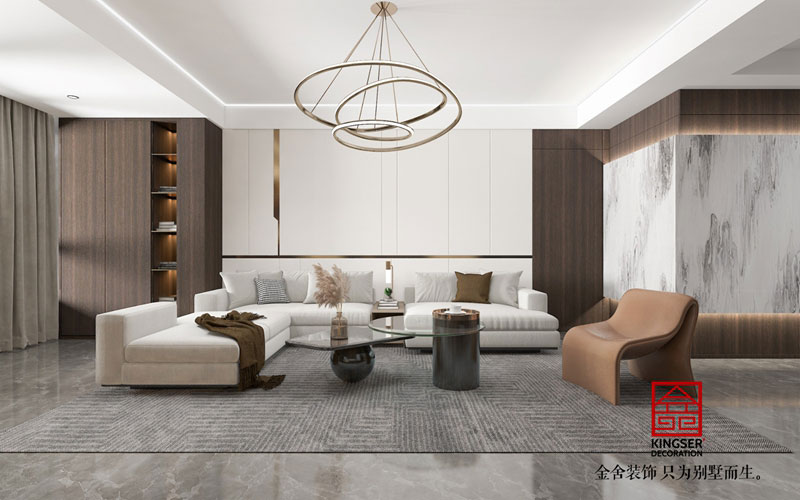 別墅裝修設(shè)計,從當(dāng)代藝術(shù)的特點出發(fā),以山水人間,閑逸寧靜作為風(fēng)格理念,塑造出富有東方文化的現(xiàn)代空間,將靜怡雅致的氣息引入室內(nèi)。