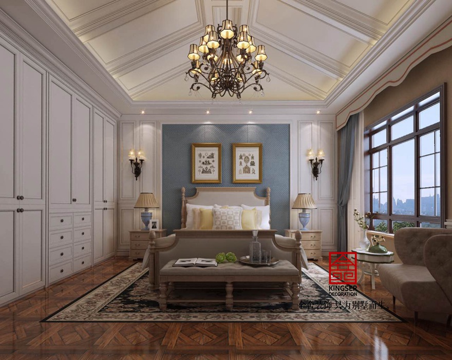 設計說明:此案例為石家莊金舍裝飾-榮盛華府220平法式風格裝修效果圖。法式風格建筑講究點綴在自然中,并不在乎占地面積大小,追求色彩和內在聯系,讓人感到有很大的活動空間。不過,有時也有意呈現建筑與周圍環境的沖突。因此,法式建筑往往不求簡單的協調,而是崇尚沖突之美。在設計上講求心靈的自然回歸感,給人一種撲面而來的濃郁氣息。開放式的空間結構、隨處可見的花卉和綠色植物、雕刻精細的家具……所有的一切從整體上營造出一種田園之氣。不論是床頭臺燈圖案中嬌艷的花朵,抑或是窗前的一把微微晃動的搖椅,在任何一個角落,都能體會到主人悠然自得的生活和陽光般明媚的心情。