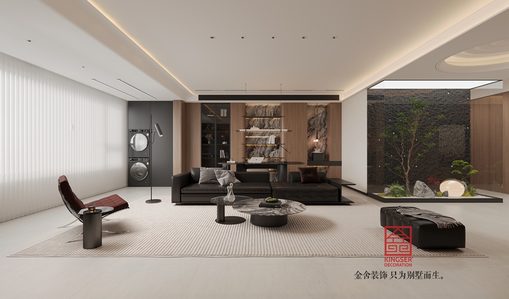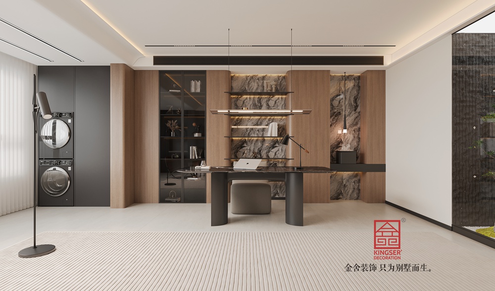 此案例為石家莊別墅裝修公司-嘉和名著230平米意式輕奢風(fēng)格裝修案例。空間布局上,開放式設(shè)計(jì)打破界限,客廳與休閑、展示區(qū)流暢銜接,提升互動(dòng)性與通透感。