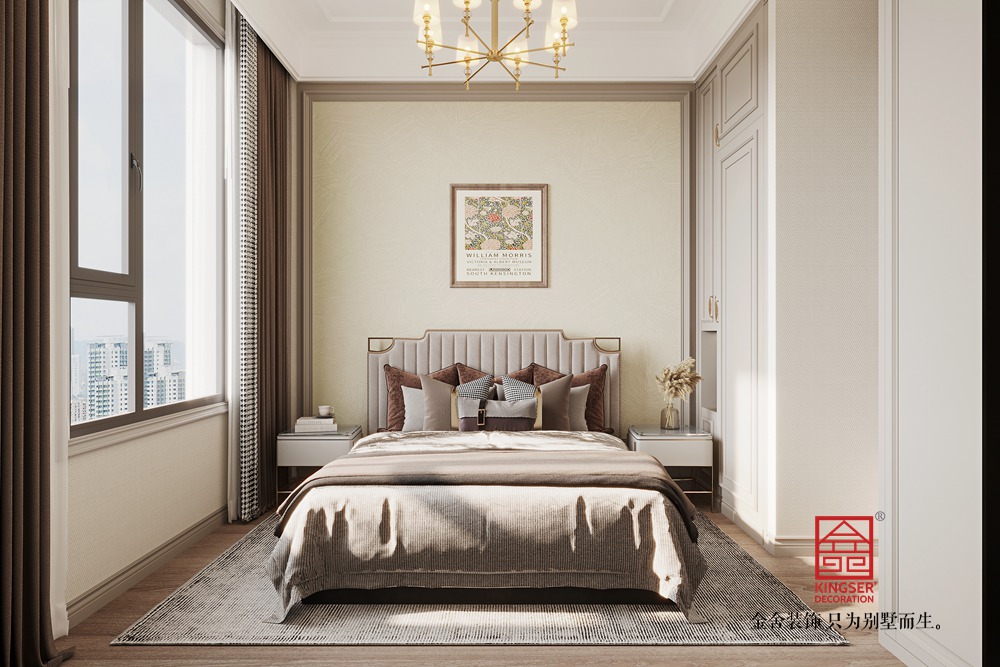 在設(shè)計(jì)過程中,摒棄了傳統(tǒng)美式可能存在的繁復(fù)與厚重,通過精簡線條、優(yōu)化材質(zhì)搭配、把控色彩層次,在保留美式風(fēng)格舒適氛圍的同時(shí),提升空間的時(shí)尚度與品質(zhì)感,打造出既符合現(xiàn)代審美,又能滿足居者對高品質(zhì)生活追求的居住空間,讓居者在自在愜意中感受輕奢生活的精致與美好。
