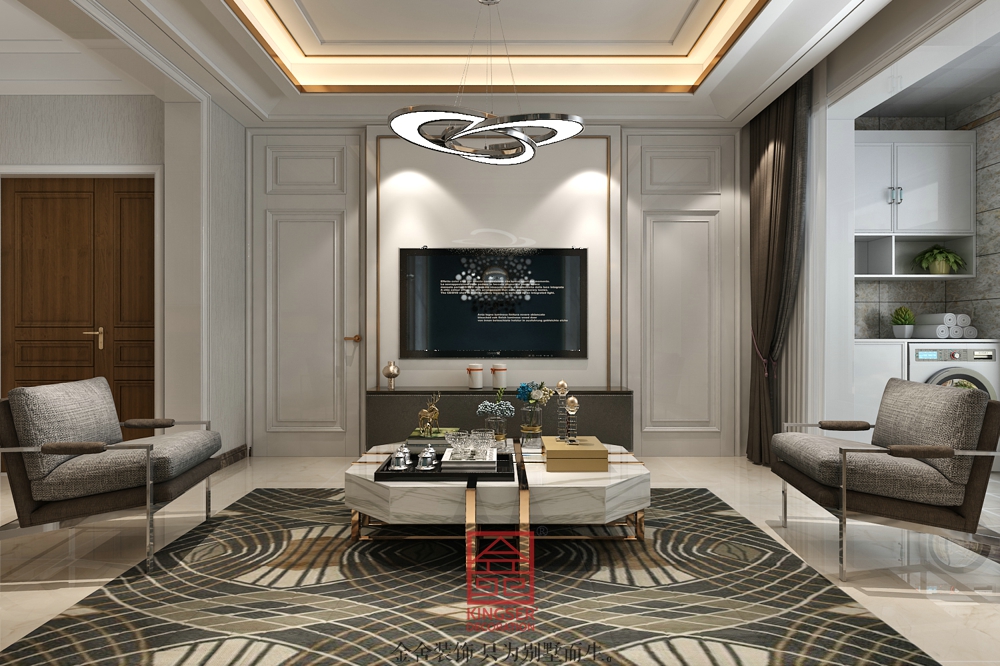 設計說明:此案例為石家莊金舍裝飾-融創中心155平米輕奢風格裝修效果圖?!‖F如今,在奢侈風暴洗禮下的都市人,一方面缺乏一擲千金的消費能力,另一方面又不肯放棄“高質量”的生活追求,所以“輕奢”作為一種流行概念應運而生,在都市的年輕人群中大受追捧。而在現代裝修設計中,“輕奢”主要表現為一種帶有理性和溫度的美學風格。